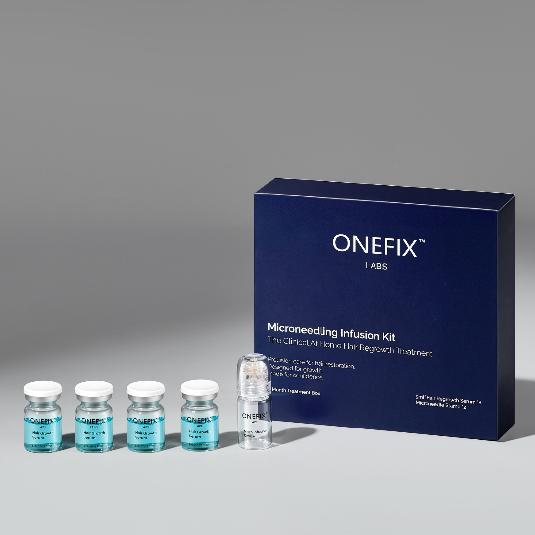 ONEFIX™ shuts down excess DHT—the hormone responsible for thinning hair. Its micro-needling system drives the active serum directly into your scalp, reducing shedding in as little as 7 days and jumpstarting regrowth within 2 months.